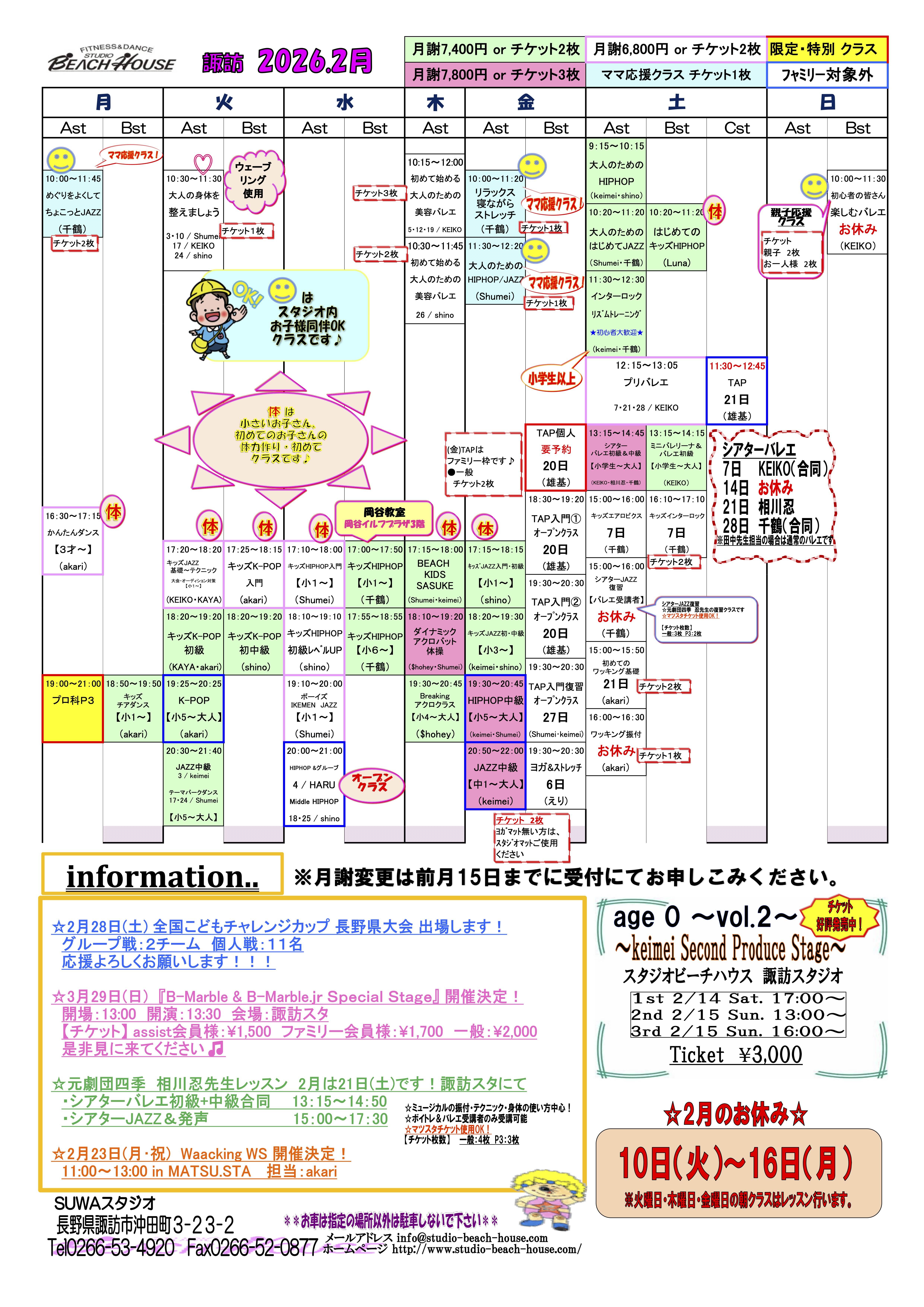 ︎ 諏訪スタジオ 【2月】レッスンスケジュール